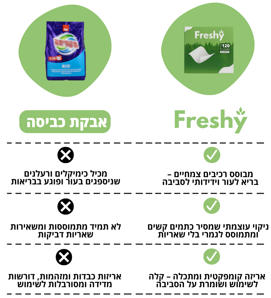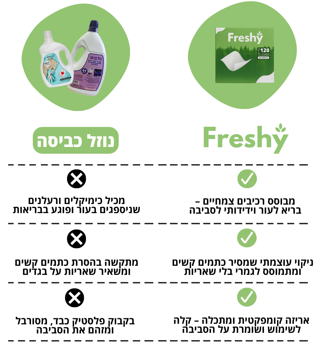 הספר הדיגיטלי של Freshy חושף את כל מה שחברות הכביסה לא רוצות שתדעו – מהמיתוסים הגדולים ביותר על אבקות ונוזלים, ועד השיטות הכי חכמות להורדת כתמים עקשניים ולשמירה על בגדים רעננים לאורך זמן.