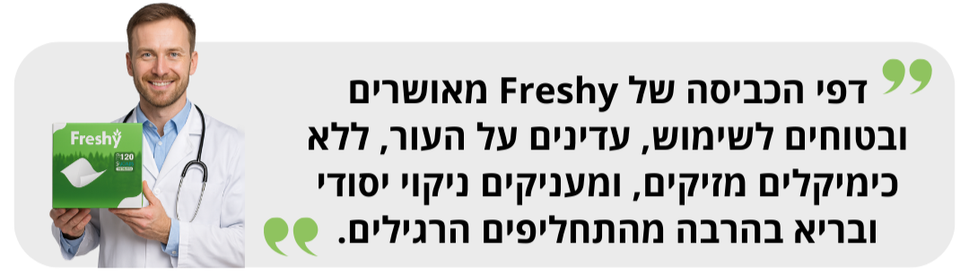 כן, Freshy בטוח לשימוש גם עם עור רגיש. הדפים לא מכילים כימיקלים מזיקים או בשמים חזקים, הם היפואלרגניים ומתאימים אפילו לבגדים של תינוקות וילדים."